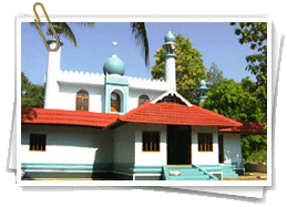 Mortal remains of Uthman Auliya, a revered man in Muslim Community here, is entombed here. Prayers are held in this mosque on Fridays. Annual festival is held in January-February. During the festival a grand processions bringing ceremoniously various articles such as rice, coconut, etc to the mosque as offerings is held. Next day, a grand feast is held for the poor. |